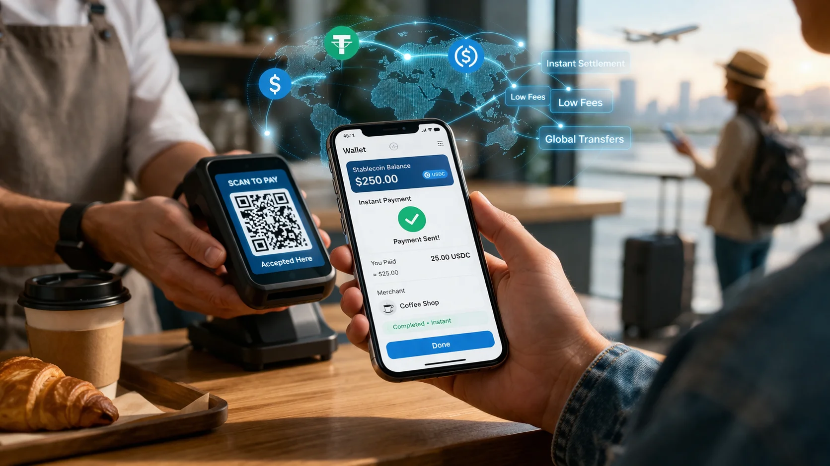 A business sending money across borders can use stablecoins to complete transactions faster and at lower cost compared to traditional banking systems.