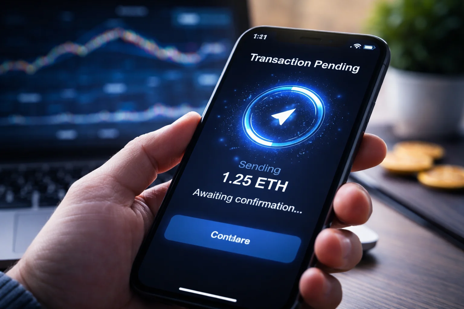 The transaction is submitted correctly, but network congestion delays confirmation. The funds don’t appear immediately, causing concern.