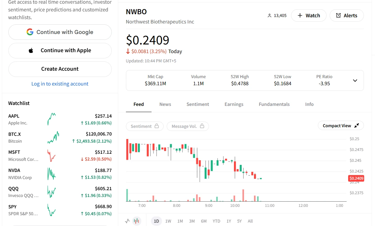 When people search nwbo stocktwits, they are usually trying to see how the trading community views NWBO (Northwest Biotherapeutics) in real time.
