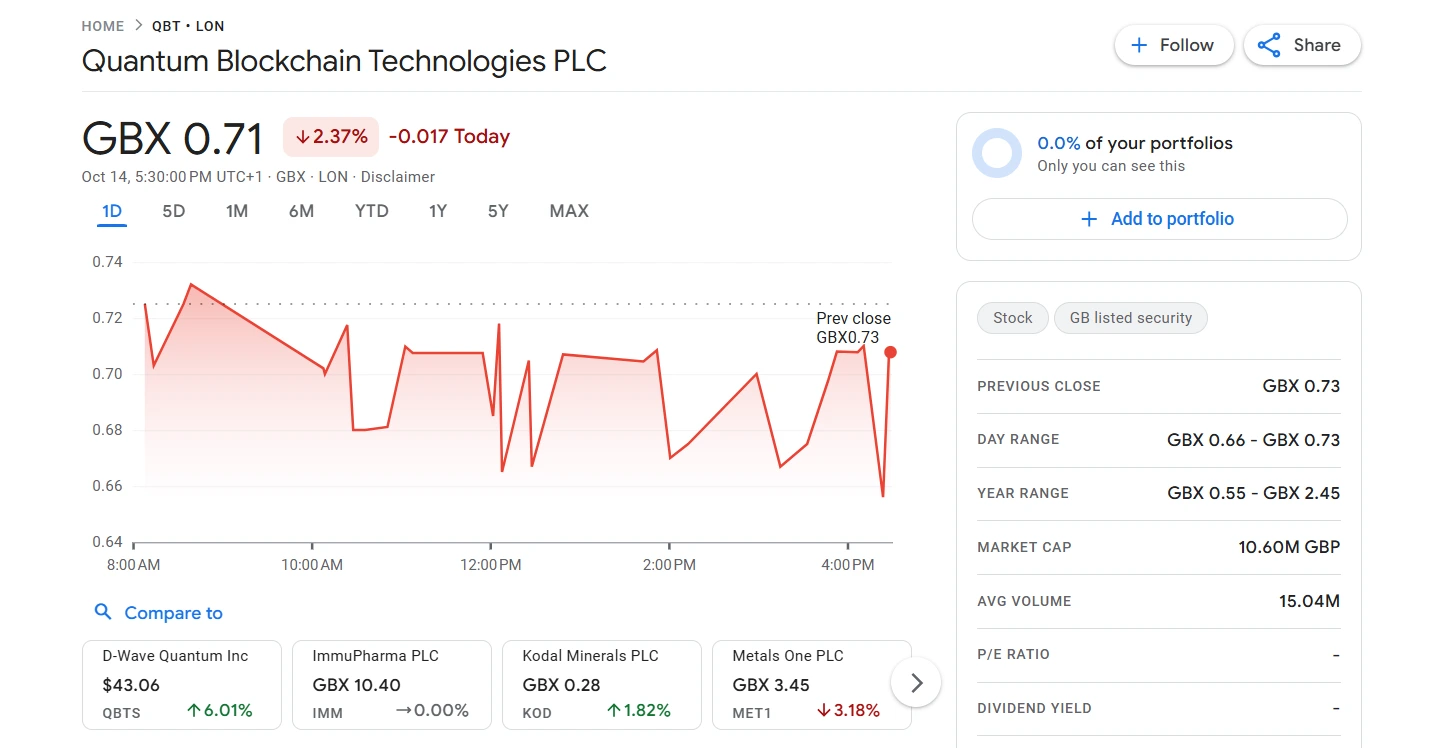QBT was formerly known as Clear Leisure plc before rebranding to focus on blockchain and crypto technologies. Its ticker symbol is QBT.L on the London Stock Exchange (LSE).